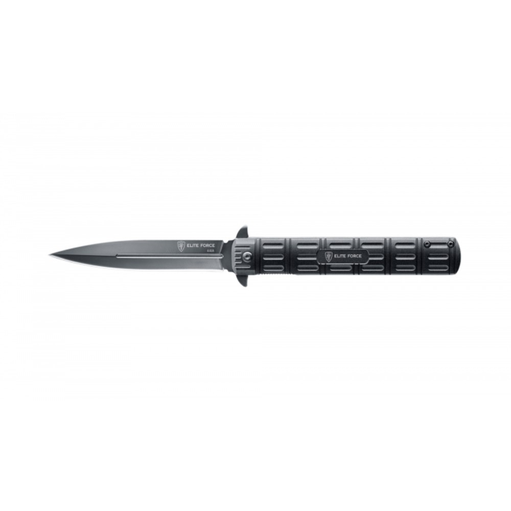 Das Design des Elite Force EF126 ist mit schwarzer Klinge und dem Griff aus Aluminium schlicht, ausgewogen und elegant. Die Klinge ragt 104 Millimeter aus dem Griff heraus und besteht aus robustem 440A-Stahl. Sie arretiert sicher mit der Linerlock-Verriegelung. Die Handhabung ist einfach: Nach Druck auf den Flipper schwenkt die Klinge aus. Zusammen mit dem gegenüberliegenden Element schützt der Flipper gleichzeitig die führende Hand. Mit dem Griff aus Aluminium liegt das EF126 angenehm leicht in der Hand.