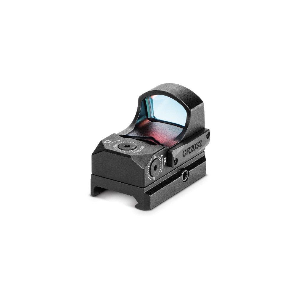 Das Gehäuse des Reflexvisiers besteht aus robustem Aluminium, das eine hohe Haltbarkeit gewährleistet. Die manuell einstellbare Absehenverstellung ermöglicht eine einfache Anpassung an die individuellen Anforderungen. Die rote Beleuchtung mit mehreren Helligkeitsstufen sorgt dafür, dass das Absehen bei verschiedenen Lichtverhältnissen gut sichtbar ist.