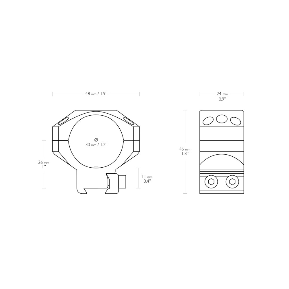 - 30 mm Durchmesser: Speziell für Zielfernrohre mit einem Durchmesser von 30 mm ausgelegt.