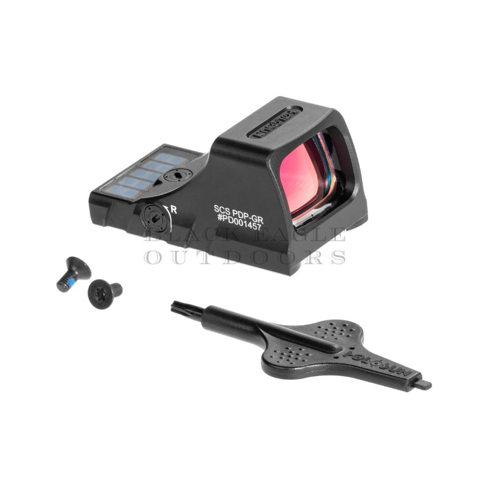 Das SCS-PDP-GR (Solar Charging Sight) ist eine Direktbefestigungsoptik nur für Walther PDP 2.0 OR-Systeme, die die niedrigste Höhe für die Verwendung mit Ironsights in Standardhöhe bietet.