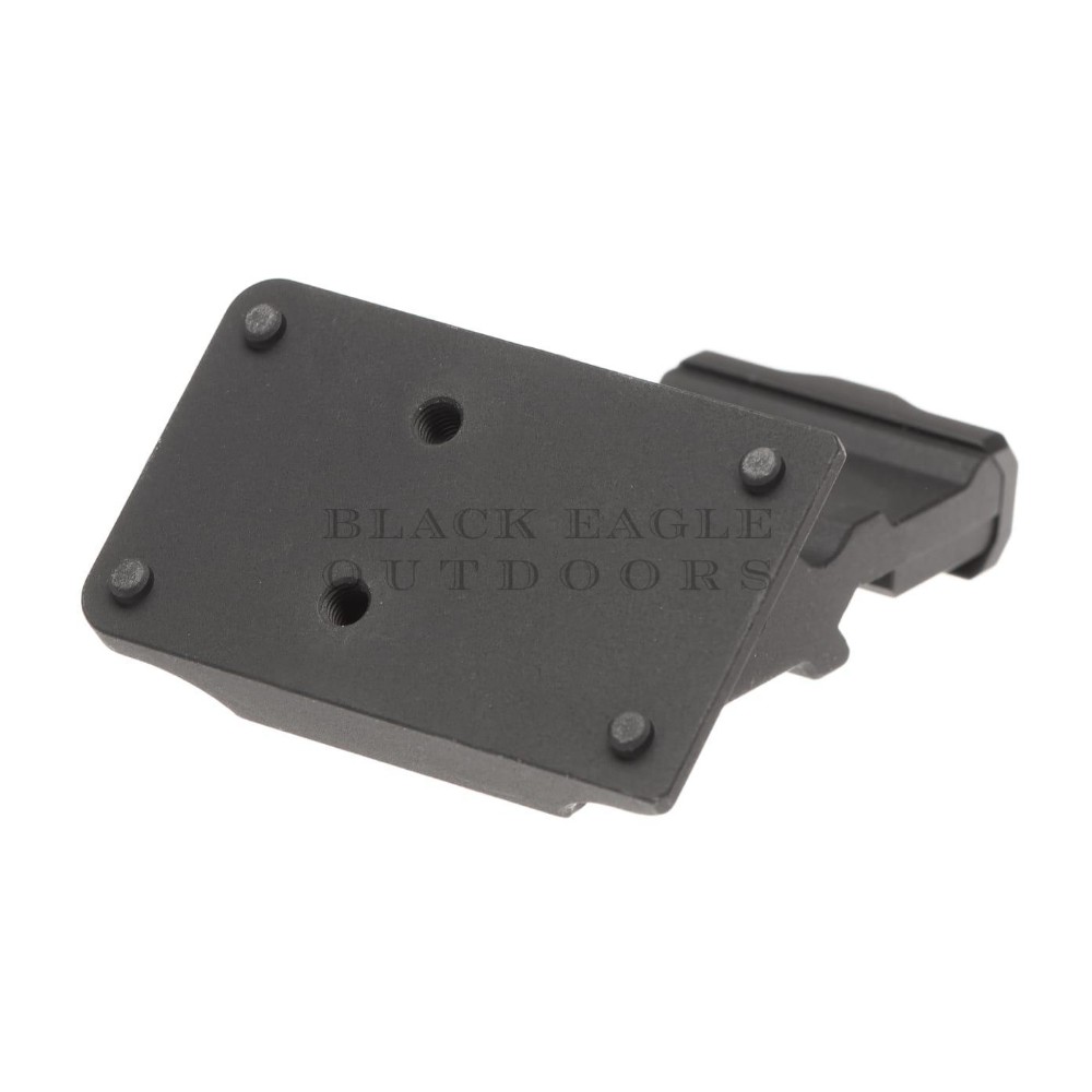 Die Oberfläche ist mit einer mattschwarzen Beschichtung versehen und mit einer 45° abgewinkelten Aufnahme für Docter Sight Rotpunkte oder solche die diese Aufnahme ausgestattet.