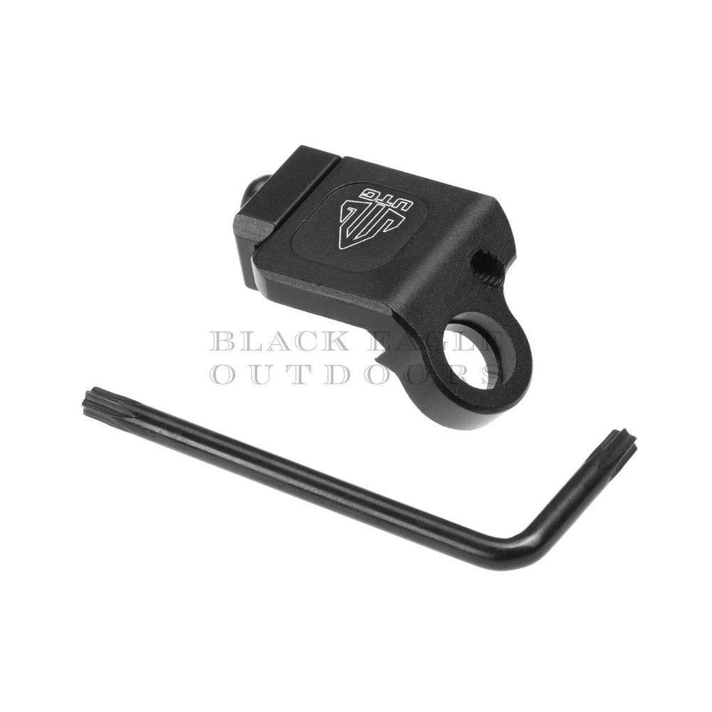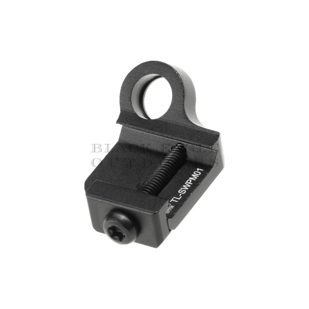Der LOW PROFILE PICATINNY ANGLED QD SLING SWIVEL ADAPTOR wird auf der Picatinny Schiene