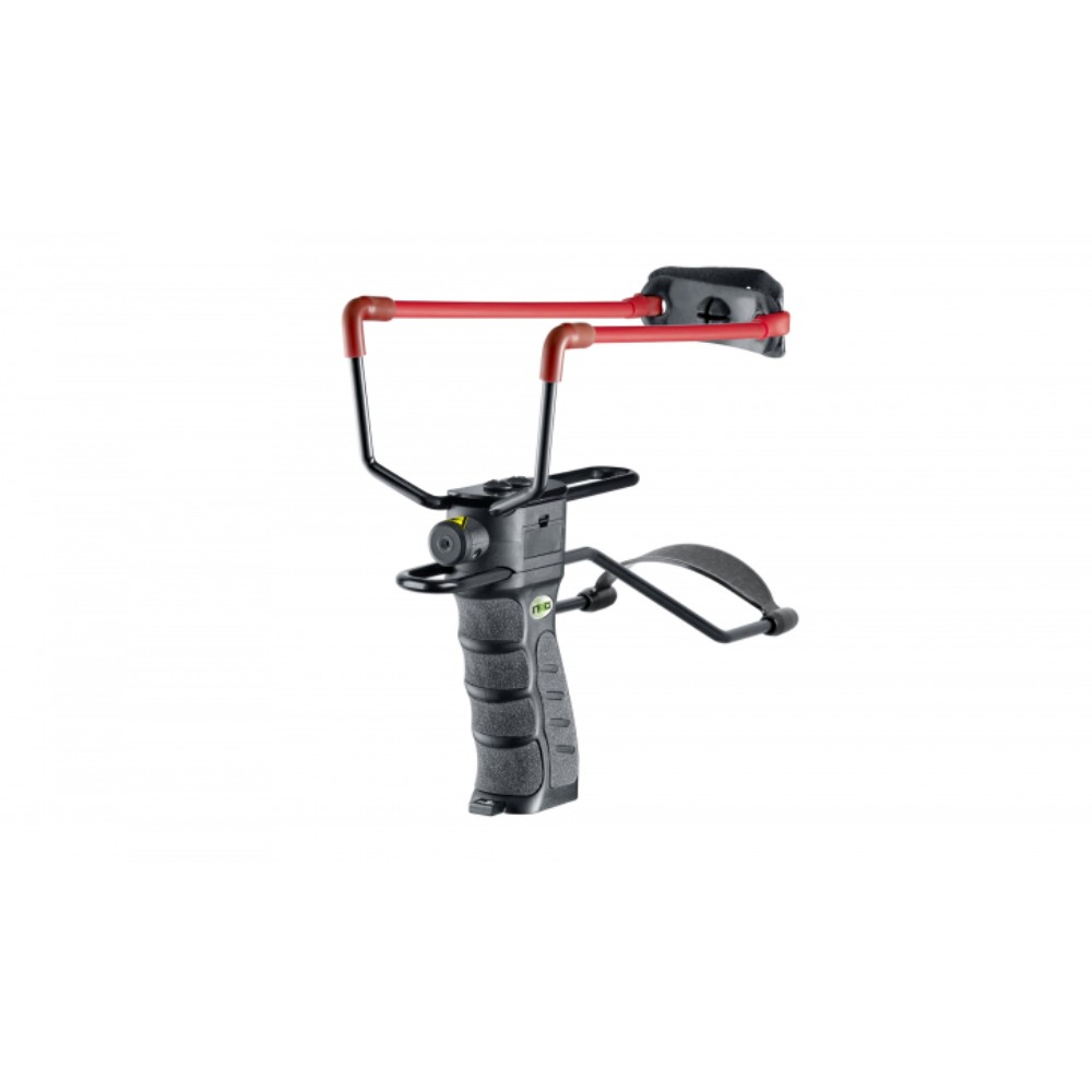 Die NXG PSS-200 Laser ist das Präzisionswerkzeug unter den Schleudern. Highlight: Ein einstellbarer Ziellaser mittig über dem Griff erfasst punktgenau das Ziel und sorgt zusammen mit dem justierbaren Wurfarm dafür, dass die maximal ½ Zoll großen Rundkugeln präzise treffen. Der strukturierte Griff bietet neben dem hohen Grip-Niveau ein Magazin für bis zu acht Kugeln. Eine magnetische Aufnahme für die Stahlkugeln erleichtert das Laden. Mit der einstellbaren Armstütze lässt sich ein Großteil der aufgewendeten Kraft auf den Unterarm umlenken und die Stabilität deutlich verbessern.