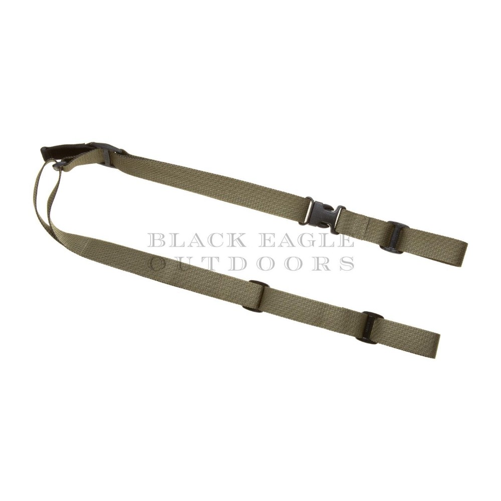 Die QA Two Point Sling Loop ist eine klassischer längenverstellbarer Zweipunktriemen. Beide Riemenenden haben eine verstellbare 25mm Gurtbandschlaufe zum Anbringen verschiedener Riemenbügel oder Haken.