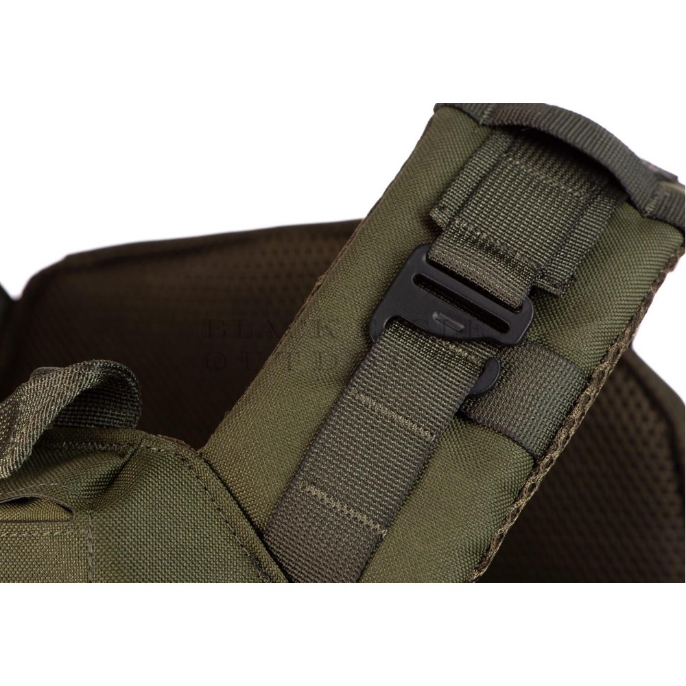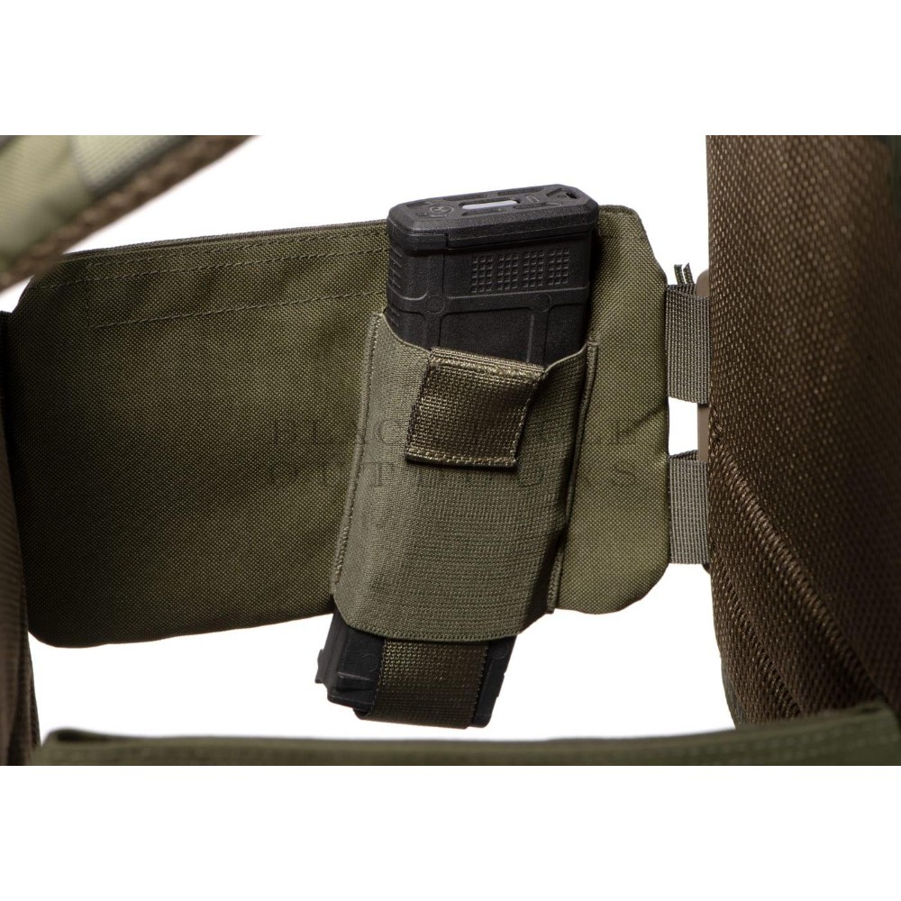 Jede Seite ist mit integrierten Taschen für ein Magazin oder ein PMR-Funkgerät ausgestattet. Die Frontplatte kann dank des Befestigungssystems mit Reifen und Schlaufen + 2 Schnallen leicht ausgetauscht werden.