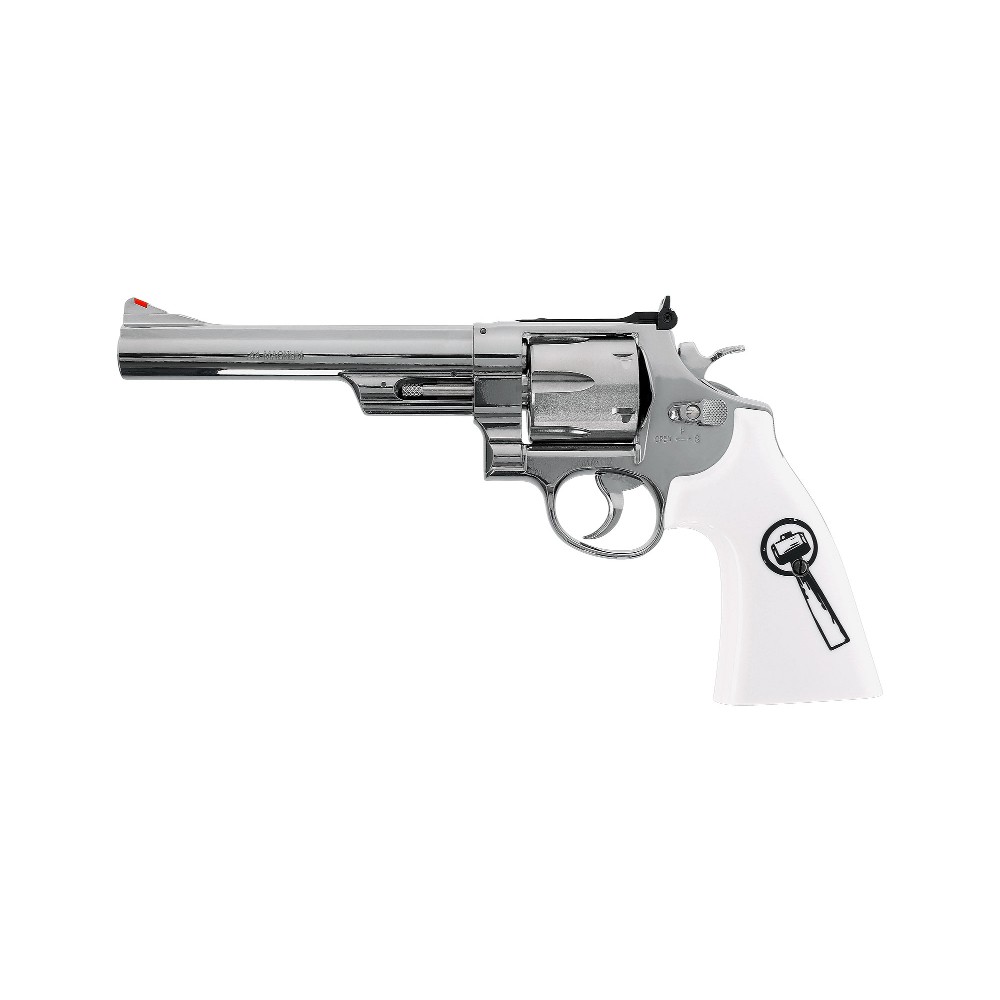 In der Sonderausführung “Trust Me“ glänzt der legendäre Smith & Wesson 629 Revolver mit einer edlen Vernickelung und Griffschalen in Elfenbein-Optik. Geprägt vom actionversprechenden Logo, lässt diese Airsoft-Variante die Herzen von Serienfans der 80er-Jahre höherschlagen.