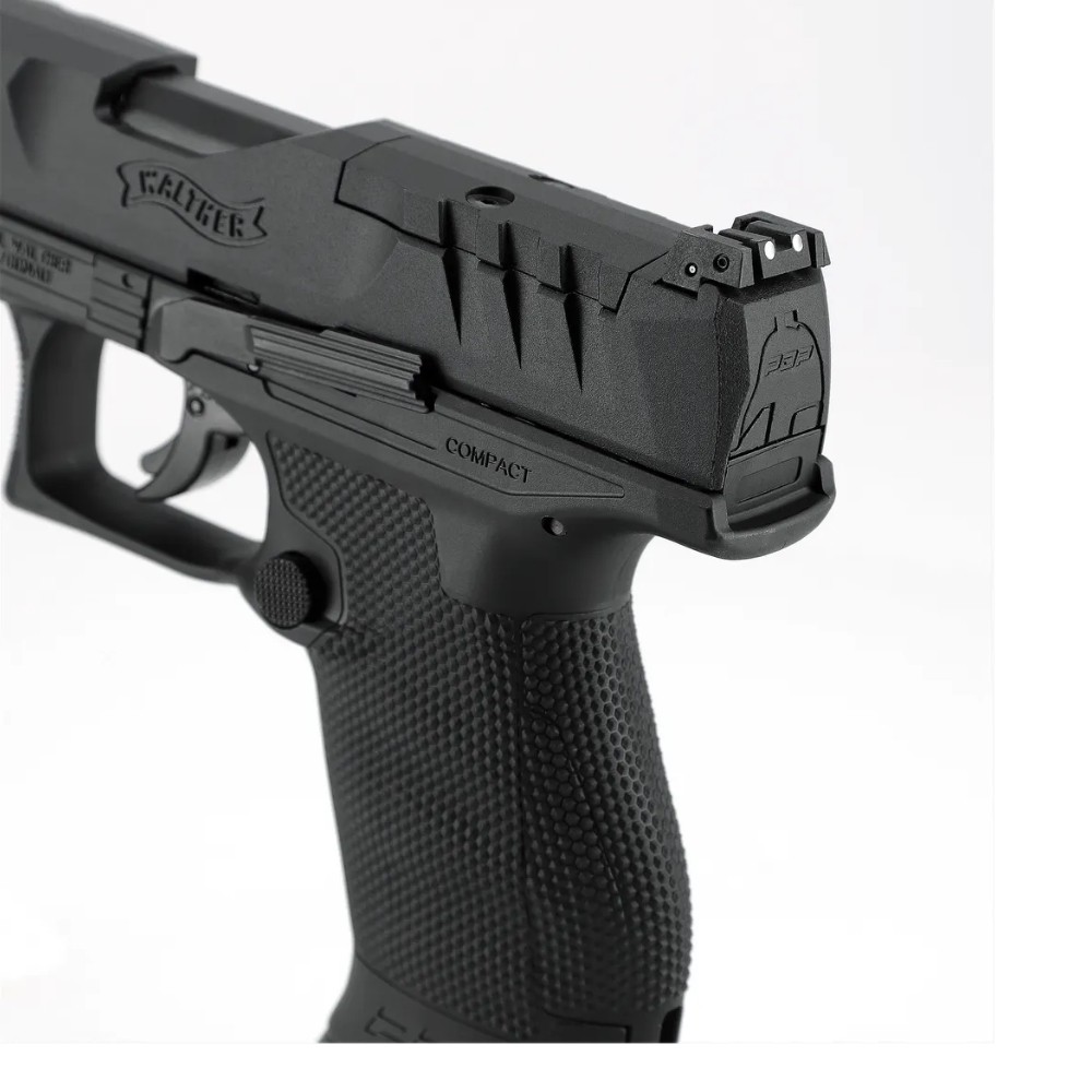 Die T4E Walther PDP Compact 4“ ist die dazugehörige High-End-Trainingswaffe des kompakten Modells mit 4“-Lauf, um Handgriffe routiniert zu erlernen, den Umgang mit der Waffe zu festigen und sichere Übungen im Force-on-Force-Bereich und anderen Szenarien zu ermöglichen.