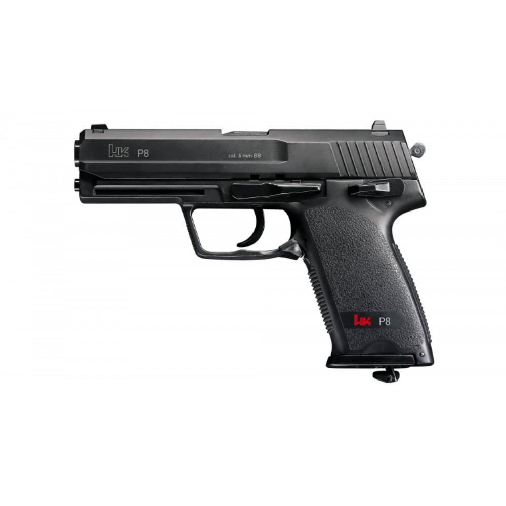 Im Hinblick auf Design und Funktion ein exakter Nachbau der HK P8 – der Dienstpistole der Bundeswehr. Die Pistole wird angetrieben durch eine ins Magazin eingesetzte CO₂-Kapsel. Ausgezeichnete Handlage, perfektes Finish und eine lange Lebensdauer – diese Pistole ist ihren Preis wert.