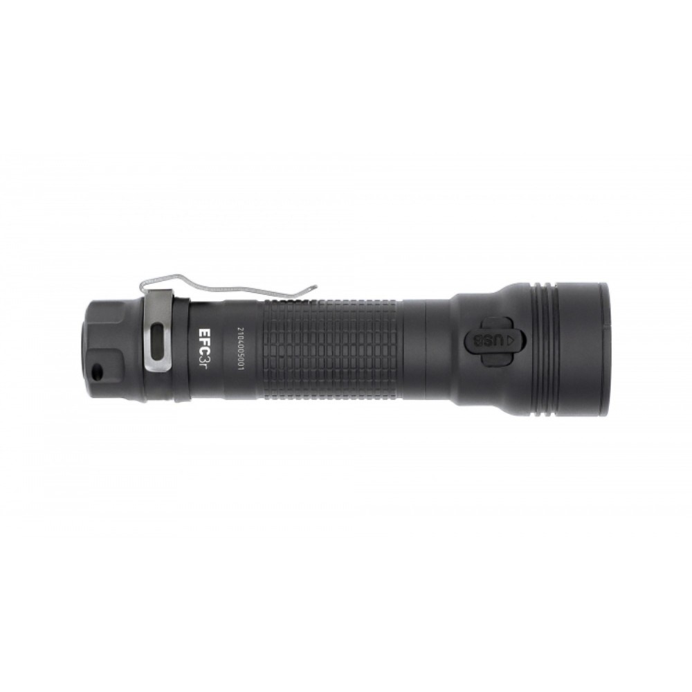 Der Leuchtriese unter den kompakten Allroundlampe empfiehlt sich als Ausrüstung für anspruchsvolle Situationen mit hohem Lichtbedarf, sei es bei Outdoor/Jagd, Im Einsatz oder in der Freizeit. Im Kopf sitzen 4 LEDs mit einem fixen Linsensystem, das mit maximal 3000 Lumen eine optimale Ausleuchtung in Reichweite und Leuchtbreite garantiert. Bestückt mit einem Akku Typ 21700 und mit einer Ladebuchse (USB-C) bietet sie 5 Helligkeitsstufen (10/50/200/1000/3000 Lumen). Ein/Aus und Momentlicht wird per Heckschalter geschaltet, während die Helligkeitsstufen sowie die Sondermodi (Stroboskop und Beacon) über den Seitenschalter aktiviert werden. Der Lichtstärkenspeicher stellt sicher, dass die EFC3r immer auf der Stufe startet, auf der sie zuletzt benutzt wurde. Die Restkapazitätswarnung gibt unter 25% Restspannung ein Signal. Der abnehmbare Edelstahlclip ermöglicht komfortables Tragen. Das solide Alugehäuse ist hartanodisiert und wasserdicht nach IPX8. Lieferung mit Nylonholster, Handschlaufe, Li-Ionen-Akku 21700, Ladekabel und Ersatzdichtung.