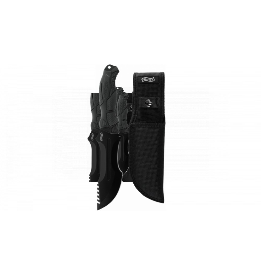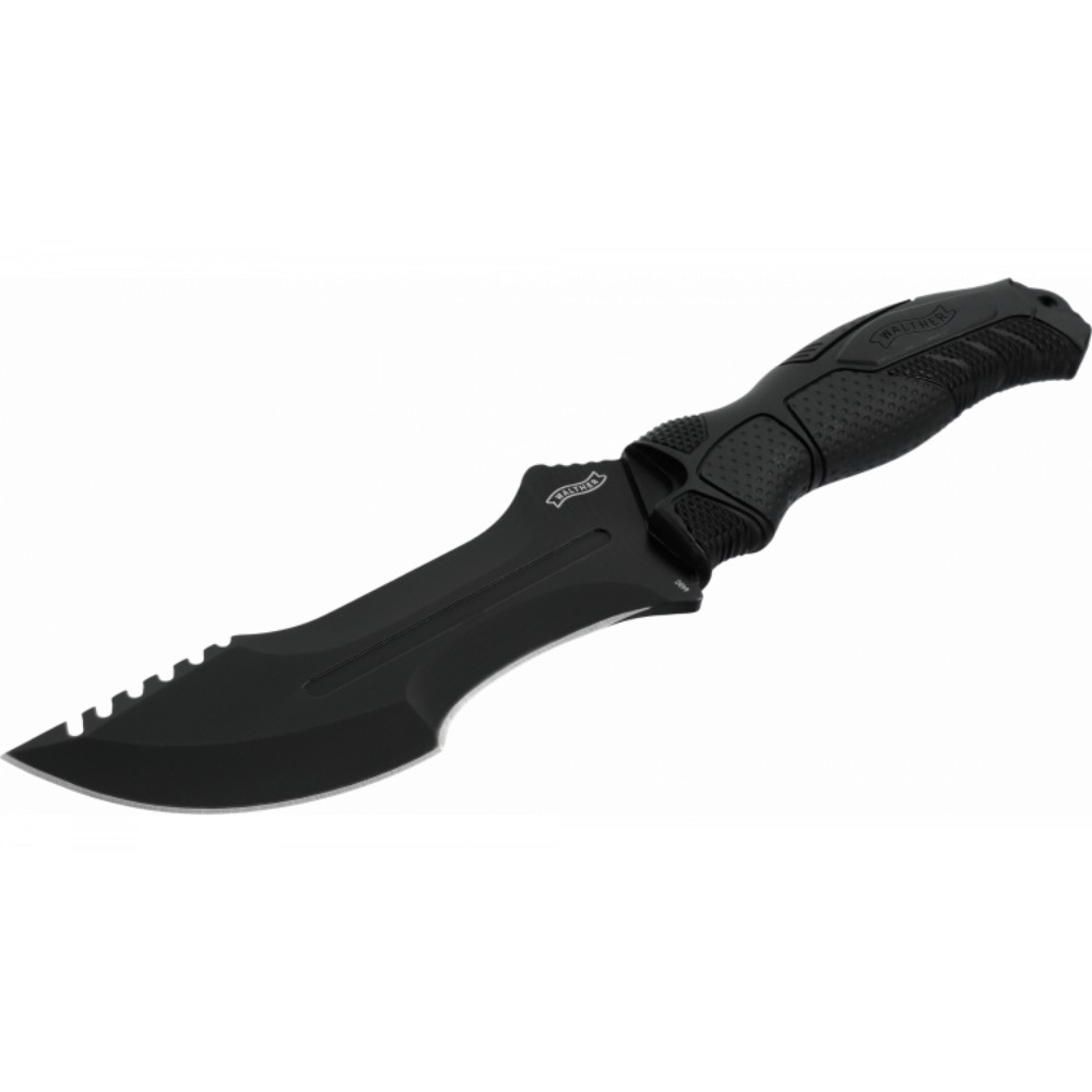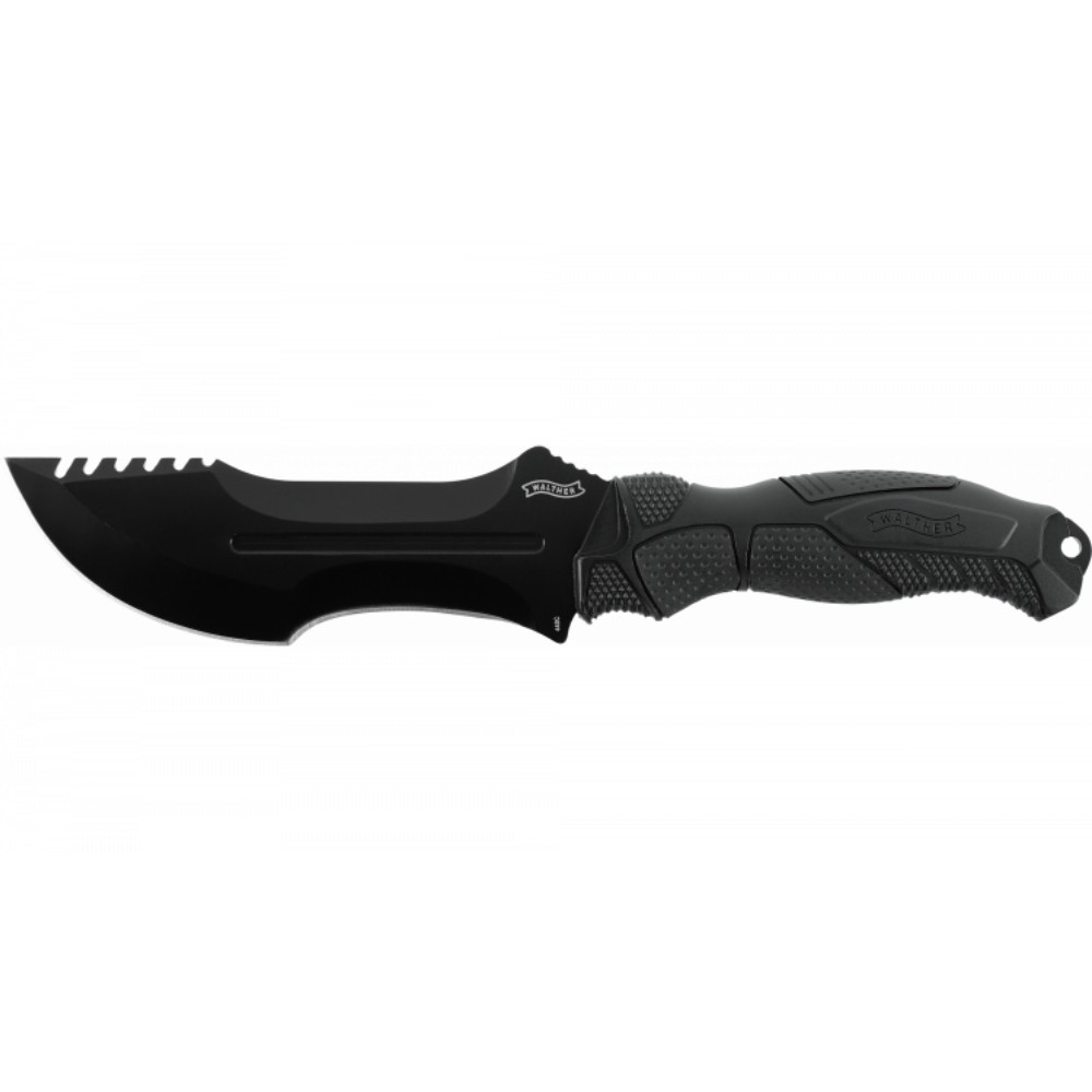 Diese besteht aus 440C mit einer schwarzen Schutzbeschichtung und wurde wegen der höheren Stabilität mit durchgehendem Erl ausgeführt, dieser reicht also von der Klingenspitze bis zur abschließenden Riemenöse am hinteren Ende.