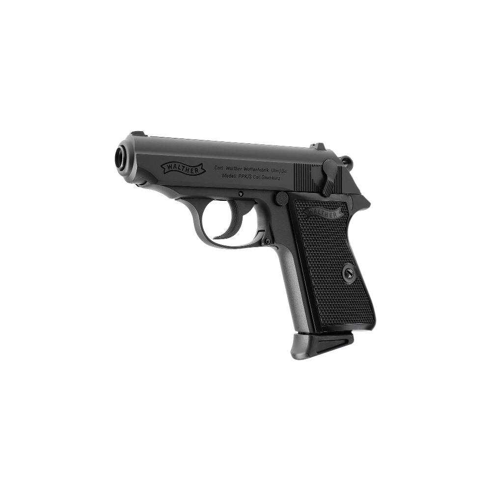 Hinter der eleganten, tiefschwarzen Vollmetall-Pistole verbirgt sich dank einstellbarem Shoot-Up und kräftigem Blowback eine perfekte Back-Up-Waffe mit Gasantrieb für Realismus bei jedem Schuss. Der große Magazinschuh des 13-schüssigen All-in-One-Magazins dient als Verlängerung des Griffs, der mit strukturierten Kunststoffschalen ein sicheres Handling garantiert. Die Schwenksicherung auf der linken Schlittenseite verfügt über eine Entspannfunktion. Die Zerlegung der Walther PPK/S erfolgt wie beim Original.